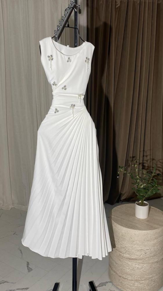 الخامه : قماش ناعم مزين بتطريز ولمسات براقة مع كسرات أنيقة